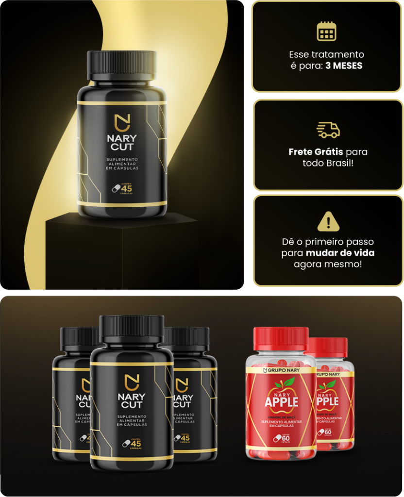 O Nary Cut é Uma Solução Emagrecedora Revolucionária! Com ingredientes naturais poderosos, ele ativa o ciclo metabólico 24/7, trabalhando continuamente para quebrar e eliminar gorduras e toxinas. Assim, seu processo de emagrecimento é constante, não para nunca, nem mesmo enquanto você dorme, sem afetar seu sono restaurador.